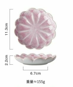 2PCs Originality Pink Flower Shape Ceramics Dining Plates