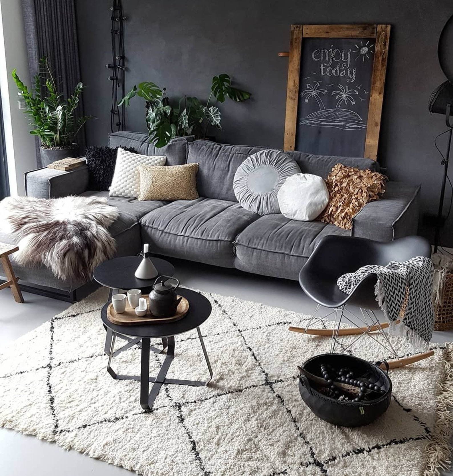 This is a Gorgeous Vintage Handwoven black Beni Ouirain Wool Rug from Morocco with boast rich, fantastic colors, tribal motifs and the traditional tribal design of Amazigh(Berber).